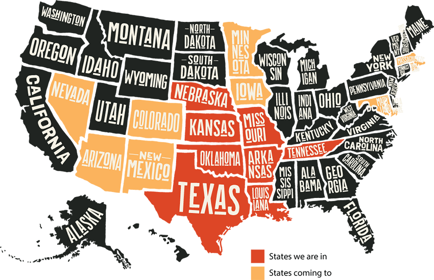 We currently distribute throughout Oklahoma, Texas, Kansas, Missouri, Louisiana, Nebraska and Tennessee… and we continue to expand into new markets every day.